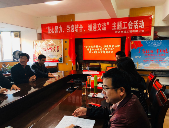 為學(xué)習(xí)貫徹黨的十九大和十九屆二中、三中、四中全會精神,貫徹落實(shí)習(xí)近平總書記全面依法治國新理念新思想,維護(hù)憲法權(quán)威,12月4日,陜西地質(zhì)工程有限公司開展了“弘揚(yáng)憲法精神,推進(jìn)國家治理體系和治理能力現(xiàn)代化”主題學(xué)習(xí)活動,公司全體員工參加。